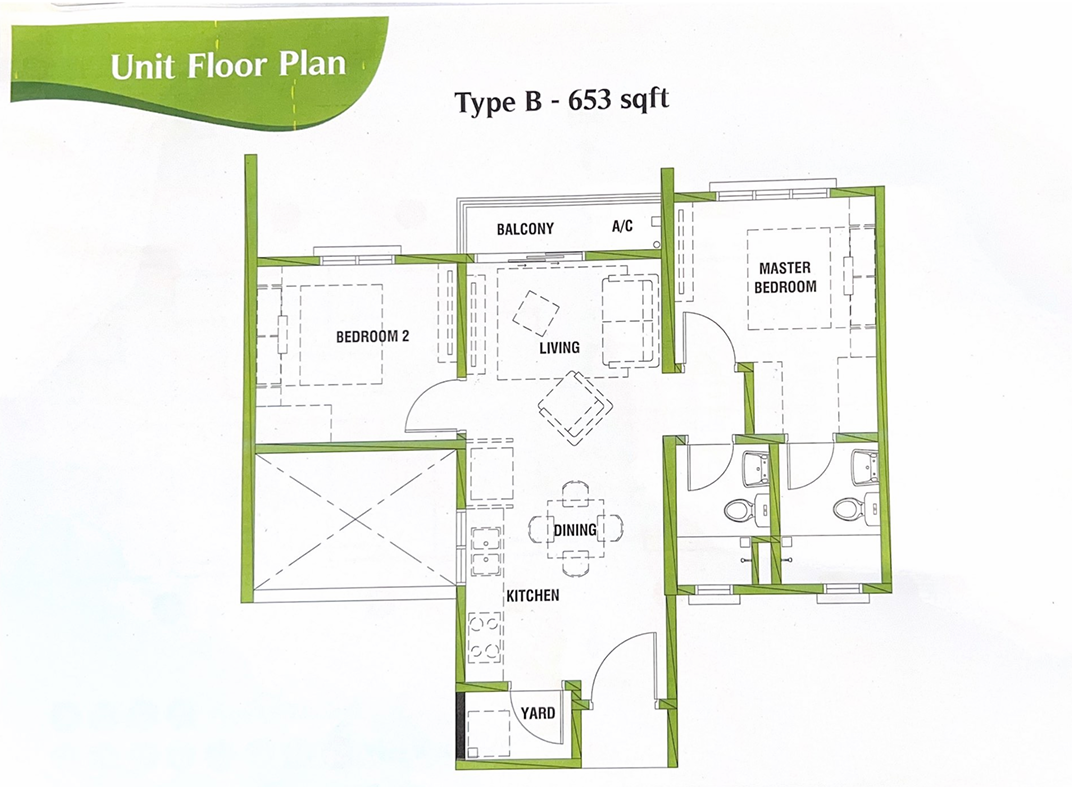 | Type B | 653 SQFT | RM 492 PER SQFT | RM 321,700 | 2 | 2 | 2 | |