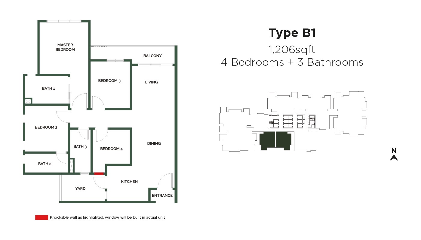 | B1 | 1206sf | 1,207psf | RM1,131,800 | 4 | 3 | - | |