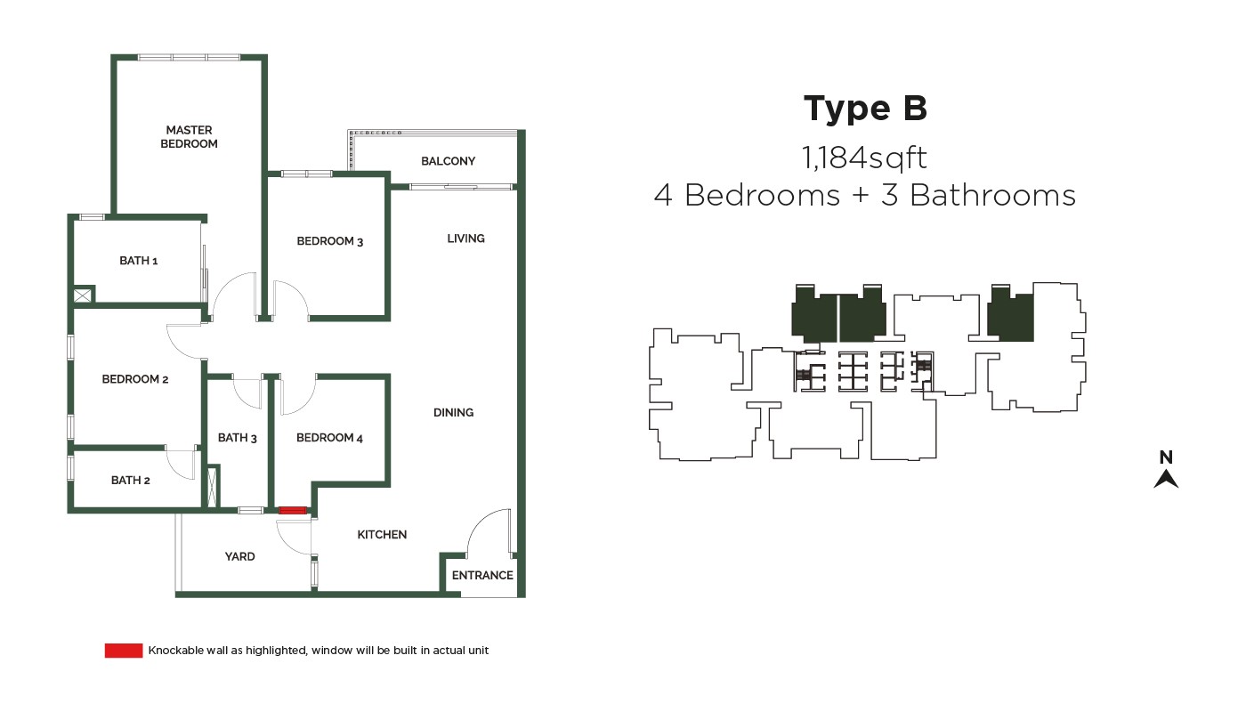| B | 1184sf | 4 | 3 | - | |||